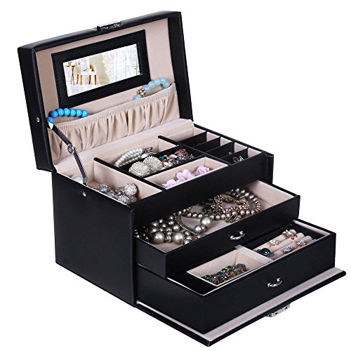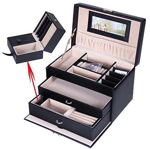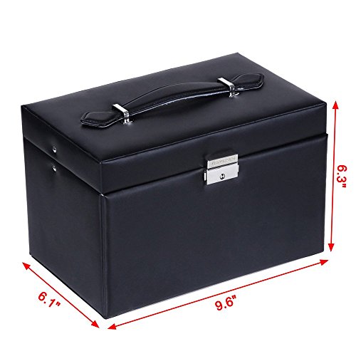 SONGMICS Black Jewelry Box Lockable Organizer with Mini Travel Case UJBC126B