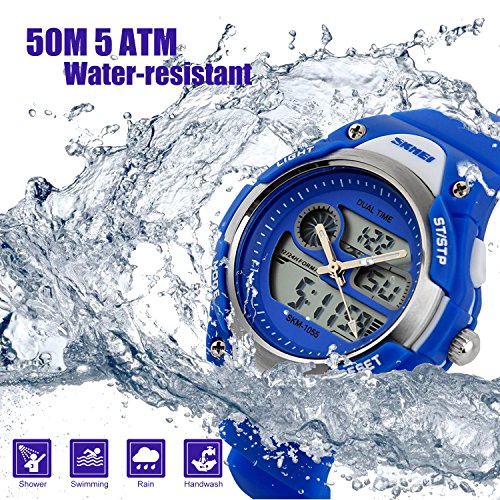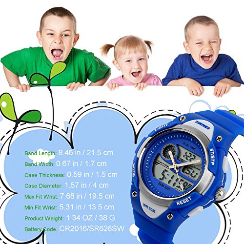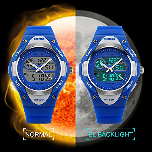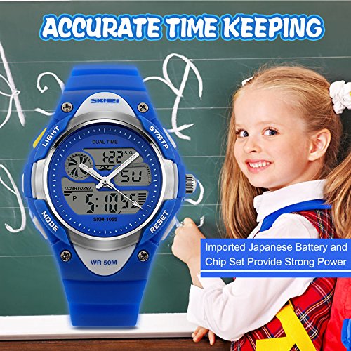 -. Title : Kids Analog-Digital Watch, Boys Girls Child Sport Watch 50M Water-resistant Date Display Alarm Stop Watch Outdoor Wristwatch Dual Time Blue