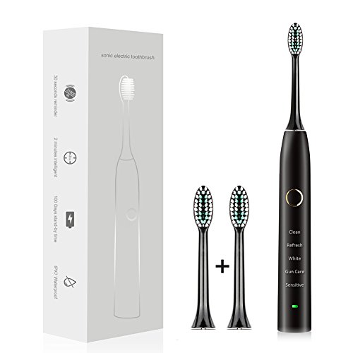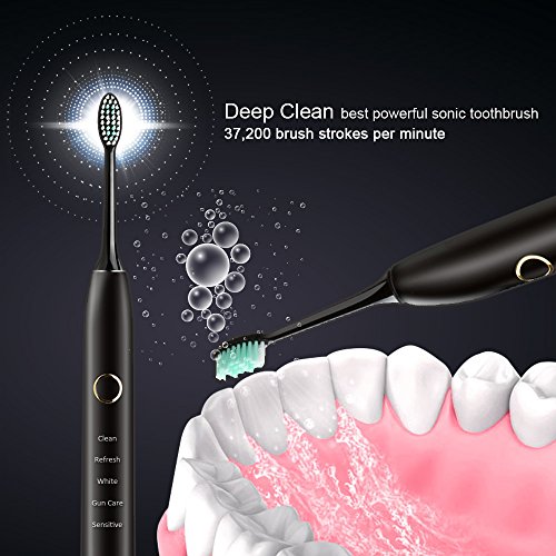 - POWERFUL SONIC CLEANING:The electric toothbrush delivers up with 37200 micro-brush per minute.Sweeping motions drive fluid deep into the tight spaces between your teeth and along your gum line. Remove up to 10X more plaques and stains,compared with a regular manual toothbrush. 2 YEAR WARRANTY AND 30 DAYS NO HASSLE RETURN.