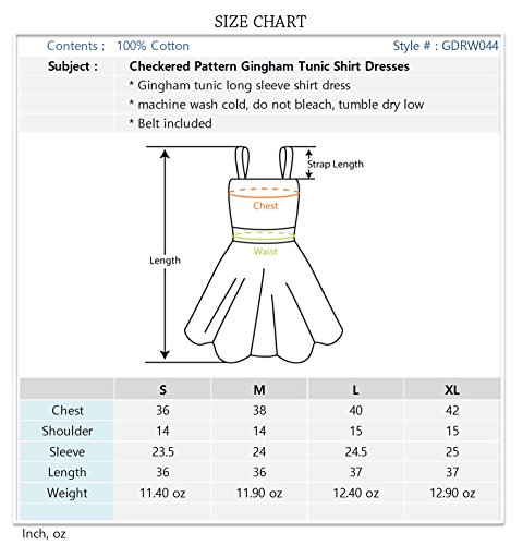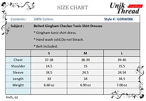 -. Binding : Apparel -. Brand : Luna Flower -. Department : womens -. Feature : FEATURES: checker patterned gingham long sleeve tunic shirt dresses great for casual styling. / ATTENTION: A difference between (006) and (044). (006) skinny belt (044) waist-cincher belt / GARMENT CARE: machine wash cold, do not bleach, and tumble dry low / SIZE: Please refer to the size chart we provided to find the right fit for you. Do not use Amazon size chart as reference. / COLOR DISCLAIMER: All products are representation of the actual products. We strive to display every product as accurate as possible. However, we cannot guarantee the colors are exactly same as the actual products due to many factors such as lighting and monitor settings. -. ProductGroup : Apparel -. ProductTypeName : DRESS -. Title : Luna Flower Women's Belted Gingham Checker Tunic Shirt Dresses