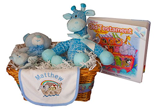 -. Feature : Noah Ark Playset, Cross and Stand, Padded Board Young Children's Bible, Newborn wirst rattle / Embroidered bib with Ark and Noah with animals and a rainbow / Bath Mitt, Booties, Photo Album, Ceramic Ark Photo Frame, / Plush Giraffe, Plush Wild Animal toy, Lullabies CD,