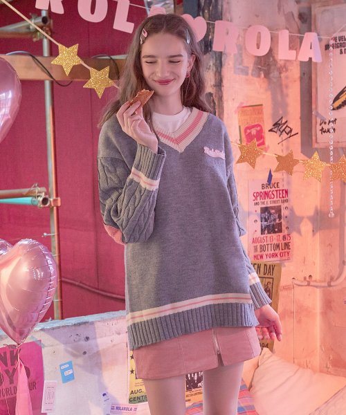 로라로라(ROLAROLA) (TS-18531) V NECK WAPPEN KNIT PULLOVER GRAY로라로라(ROLAROLA) (TS-18531) V NECK WAPPEN KNIT PULLOVER GRAY로라로라(ROLAROLA) (TS-18531) V NECK WAPPEN KNIT PULLOVER GRAY