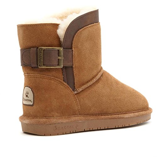 Studio : Bearpaw Publisher : Bearpaw Binding : Apparel Product Description *This boot lets you fend off chilly weather... and look fab while doing it! *Suede leather upper with buckled strap accent *Pull-on style *Approx. 6" shaft height *Wool-blend lining *Cushioned footbed *Durable TPR outsole *Available in whole sizes only, half sizes please order the next size up 0