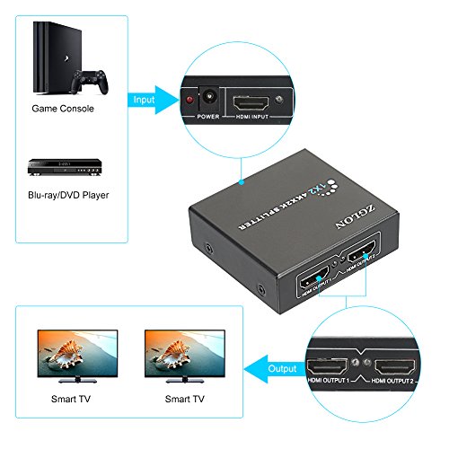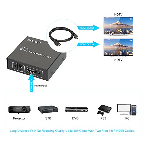 - ✔Guarantee: 1 Year Warranty by Manufacturer Zglon. Package included: 1x HDMI 1x2 Splitter, 1x 5V AC Adapter, 1x User Manual, 2x HD HDMI Data Cables
