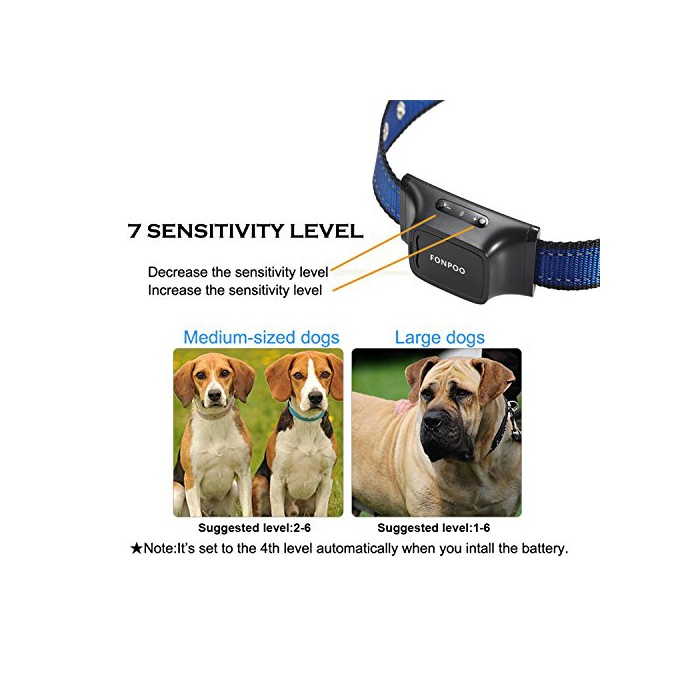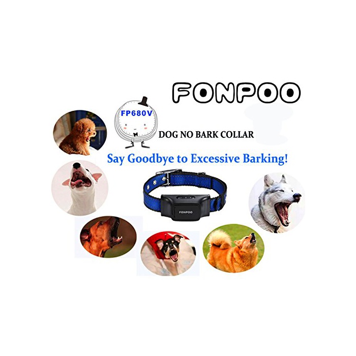 FONPOO FP680V 전개 종 대응 낭비 짖어 방지 목걸이 조절 가능한 경고음과 진동 감도로 제어 애완동물 safe 바크 콘트롤 컬러
