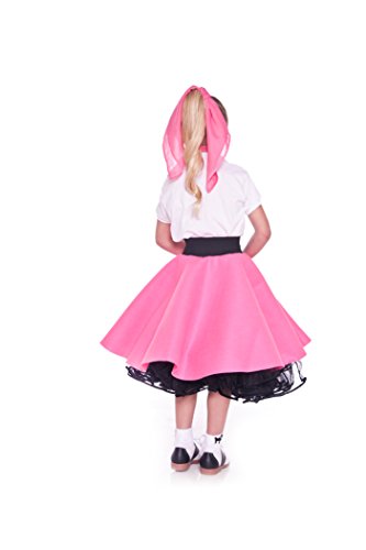 Our unique, homemade skirts are lovingly hand-cut and sewn by seamstresses right here in the USA. Rest assured that you are supporting a local business when you purchase our high-quality clothing. We use only the highest quality, acrylic felt available for long lasting comfort and durability. These skirts can be worn again and again, from costume to the dress up box. Poodle and leash appliques are professionally embroidered, not ironed on, to ensure they never fall off. We offer 3 different sizes with an elastic waistband, to provide a snug, comfortable fit. With a wide variety of colors available, your special young lady is sure to find just the right one to make her happy. The authentic, vintage, 1950's look of our poodle skirts is a must for that daddy-daughter dance, Halloween costume, sock hop, themed party and more!Feature