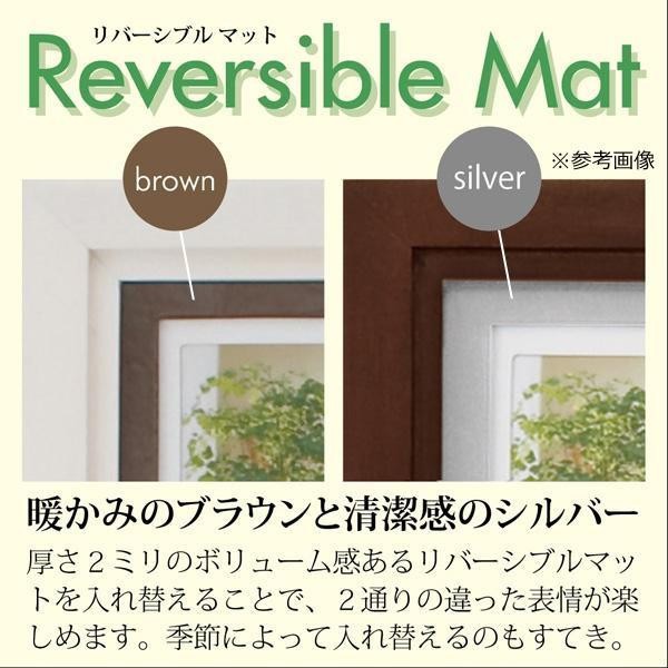 | 明るく清潔感のある空間を演出するフォトフレームです。ブラウン/シルバーのリバーシブルマット付で、2通りの違った表情を楽しめます♪ |