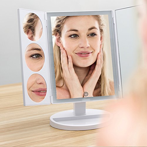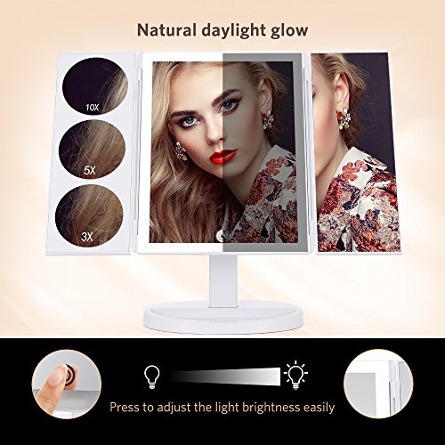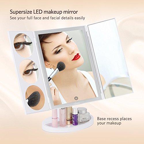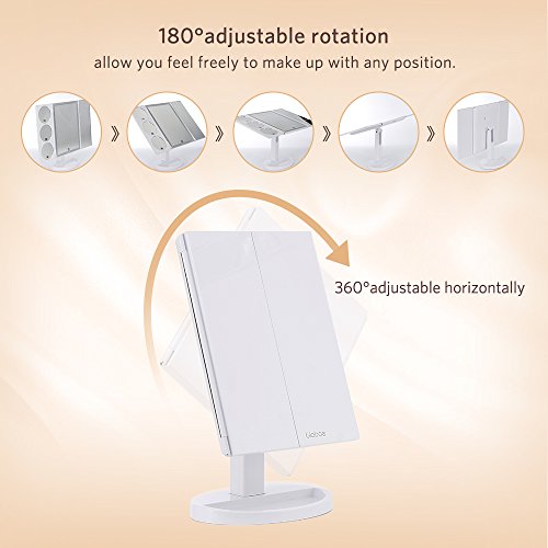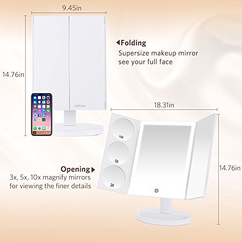 - ·Super Large and Stylish:If you need a large size and professional mirror, it will be a good choice for you. It may be the largest folding LED cosmetic mirror in the market. Fantastic white and stylish appearance make it a great decoration, adding improved sense of style to your room.