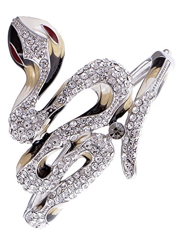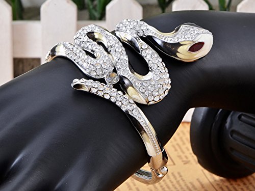 UNIQUE DESIGN - Bangle bracelet featuring snake design with clear crystal/grey colored rhinestones and painted enamel.