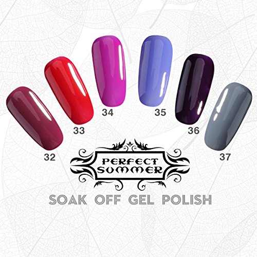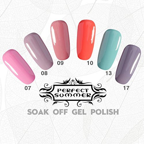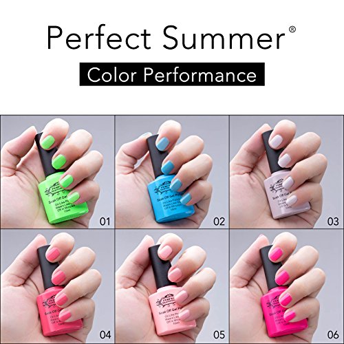 Perfect Summer Pro Gel Nail Polish UV/LED Soak Off Art, "Heaven On Earth" Colors Kits - Pack of 6, 10ml Each (Set #015)