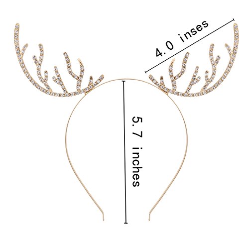 (VOGUEKNOCK)/Accessories/Hats/DIRECT FROM USA/VOGUEKNOCK Christmas Headband Reindeer Antlers Crystal Paved Delicate Metal Headband