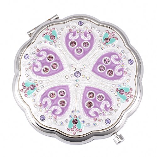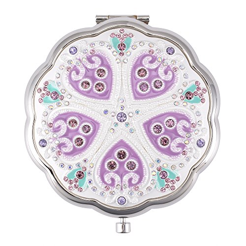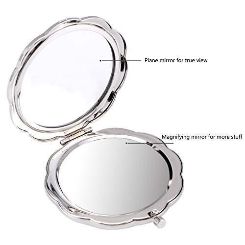 - ITEM SPECIFICS -- Floral shape design of the shell, pattern and flowers sculpture. Super-compact, two-sided travel mirror, easy be carried inside your bag wherever you go! Featuring a magnifying glass on one of the sides, a normal glass on the other side, it¡¯s perfect for seeing with perfect clarity every detail on your face, women used compact mirrors to refresh their makeup