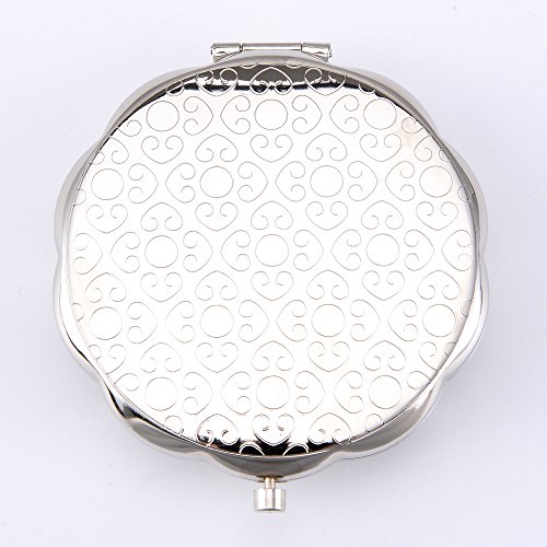 Nerien Women's Magnifying Foldable Metal Cute Five Petals Flowers Vanity Round Mirror Cosmetic Purse Mirror Portable Travel Mirror Silver