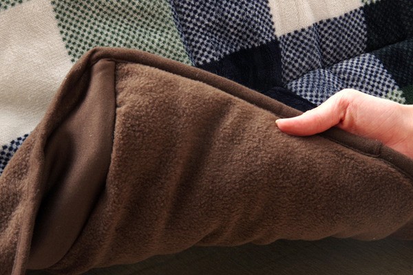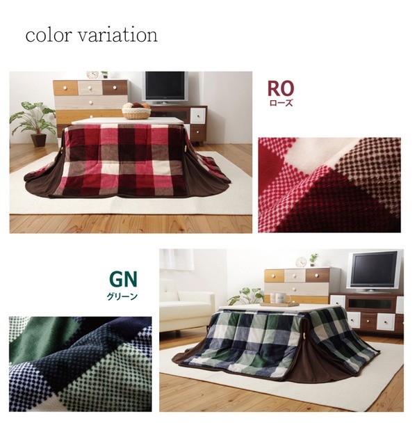 あたた.かみのあるカラーと素材を使用したチェック柄のこたつ布団です。表地は糸を先に染色してから生地を織る技法を採用しておりますので、プリントものや後から染めるものとは違う上質な雰囲気があります。裏地には軽くて保温性の高いフリースを使用しています。省スペースタイプで角が膨らまず、お部屋を広く使えます。薄手なので折りたたんでもかさばらず、コンパクトに収納できます。部分暖房のコタツは電気代もおトクです。本商品はご家庭の洗濯機である洗い可能(ネット使用)ですので、いつでも清潔にご使用頂けます。