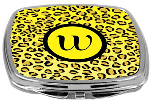 Rikki Knight Compact Mirror, Letter w Initial Yellow Leopard Print