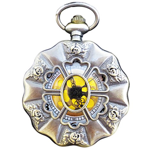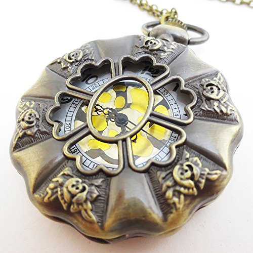 [모노G] MONOZY 앤틱 넥크리스 시계 장미의 회중 시계 펜던트 워치【수납 파우치 화장품 상자세트】레트로 넥크리스 워치 장미 의 회중 시계