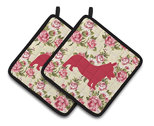 Caroline's Treasures Corgi Shabby Chic Yellow Roses Pair of Pot Holders BB1069-RS-YW-PTHD, 7.5HX7.5W, Multicolor