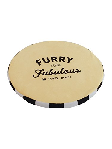-. Feature : CREATED FOR CATS: The circular design of the cat bed will naturally draw your cat to it. Just place it on the floor, couch, and even the table -- he might even choose this cat pad instead of the keyboard! / MACHINE-WASHABLE COVER: No need to mess around with cat hair removing products. Just remove the cover and pop it into the machine. Done! / SOFT AND COMFORTABLE: Filled with polyurethane foam, this stylish cat bed provides ¾ inch of cushion for your cat to nestle into / STYLISH DESIGN: "Furry and Fabulous" word art pops while a subdued honeybee yellow color and bold zebra siding will complement any decor / 15'' IN DIAMETER: The perfect sized daytime cat bed to accommodate any cat's lounging habits