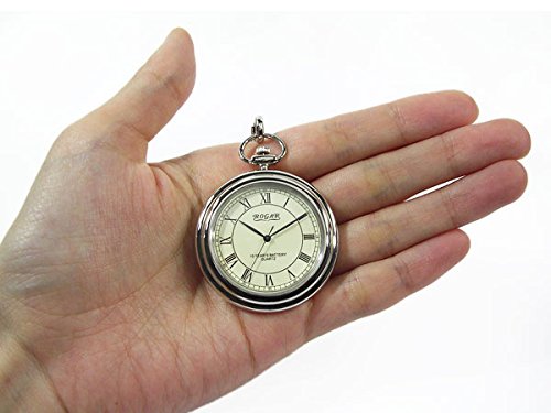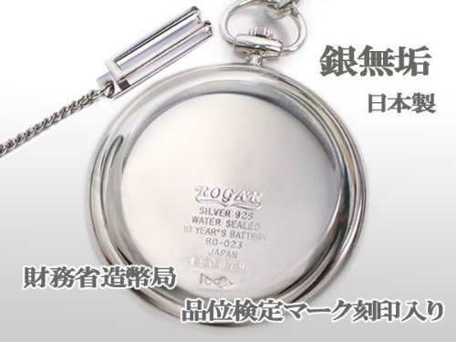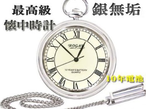 -. Title : 懐中時計 ROGAR ロガール 日本製 銀無垢純銀 チェーン付き ローマ数字