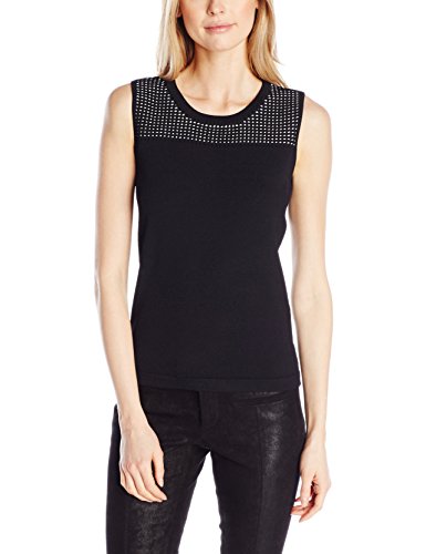 Sleeveless crew neck shell with contrast point Elle detail
