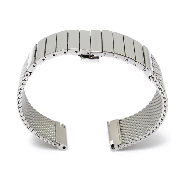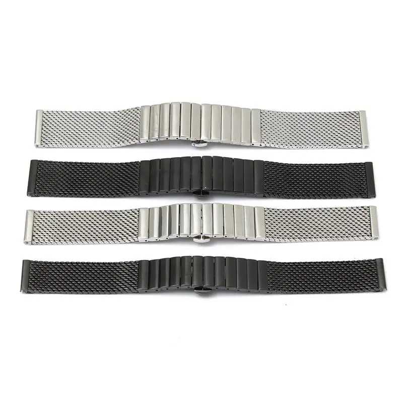 | [해외]블랙 실버 22 미리메터 스테인레스 스틸 메쉬 시계 금속 시계 팔찌 푸시 버튼 스트레이트 엔드 남성 손목 시계 스트랩 벨트 |