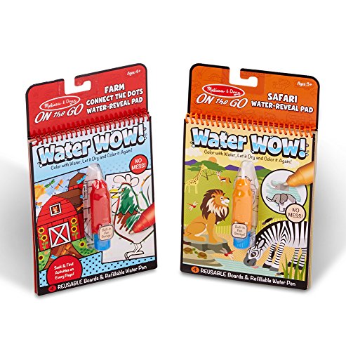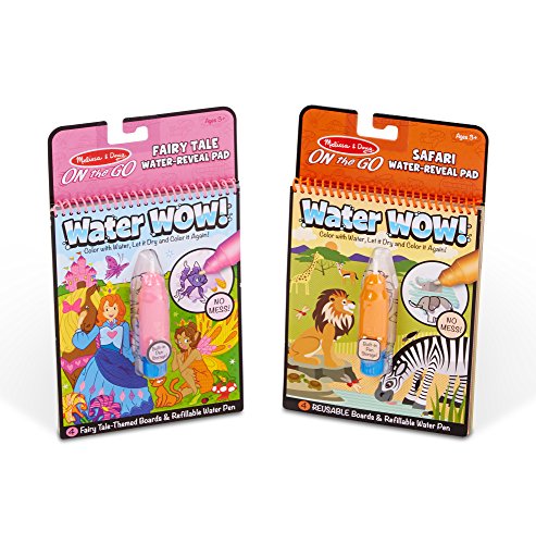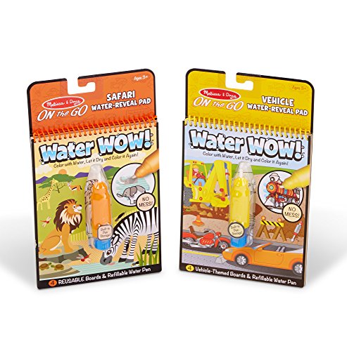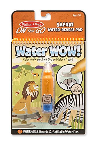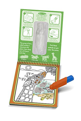 No-mess painting for kids! This exciting paint-with-water coloring book includes four reusable pages and a refillable water pen. Simply use the pen to color in each scene--details and vibrant color appear with every stroke! Then let the page dry to erase the pictures and fill it in again and again. This safari-themed book includes four scenes to color, and a search-and-find activity for each scene. The chunky-sized water pen is easy for kids to hold and stores neatly right in the front cover, so Water WOW! books make ideal travel activity books and travel toys for kids.Feature