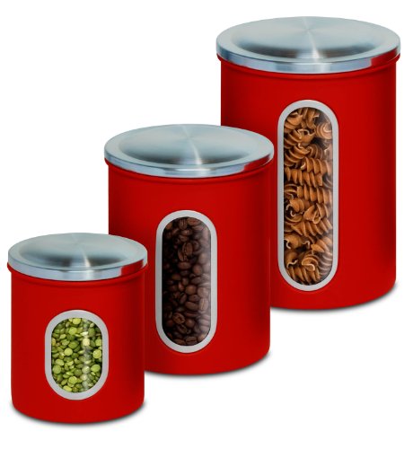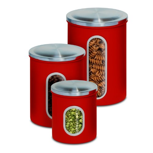 Honey-Can-Do KCH-03011 3-Piece Metal Nested Canister Set, Red