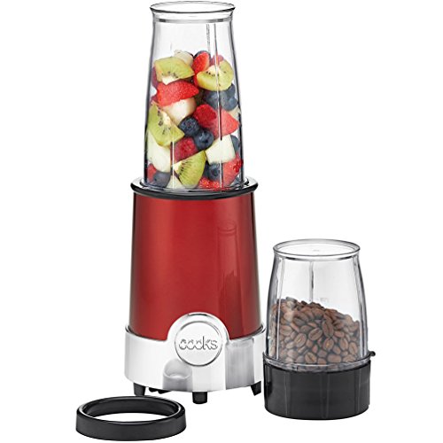 Shake up your kitchen routine with this 5-in-1 power blender from cooks. Whether you're whipping up a healthy smoothie or mixing and blending homemade sauce, every process is easier and more convenient with this 6-piece high-power blender. -stainless steel blades makes blending, whipping, chopping, -grinding and mixing effortless -drink directly from the blending cup with the comfort lip ring -includes quick and easy recipes -high-power base with a 120V, 60hZ motor 6-piece set includes: -high power base -13½-ounce blending cup -6-ounce grinding cup -comfort lip ring -stainless steel grinding blade -stainless steel blending blade -240 watts. Plastic/stainless steel. Hand wash base; blades and cups are top-rack dishwasher safe. Imported.Feature