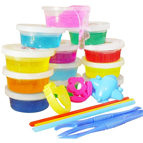 -. Feature : PLEASE KEEP IT AWAY FROM AGES UNDER 3, ONLY FOR PLAYING, NOT EDIBLE. / SAFE AND FUN- A great toy for kids, rich colors, develop kids' creativity and imagination,exercise the kids' coordination ability with hands, eyes and brain / FEATURE- Easy and Air dry, do not baked,safe material, looks like jelly, super light, soft, color is pure, can be arbitrary mixed color,easy modelling, HAVE OT SEAL UP THEM WHEN DON'T PLAY / 45g for each container, 12 containers 1 pack, along with 3 colorful straw ,3 moulds and 3 small tools. / MAIN INGREDIENT-Purifying water and gelatin. Eco-friendly material, good for kids' health.