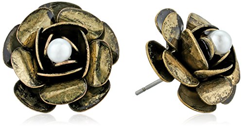 antique gold rose flower stud earring with white pearl
