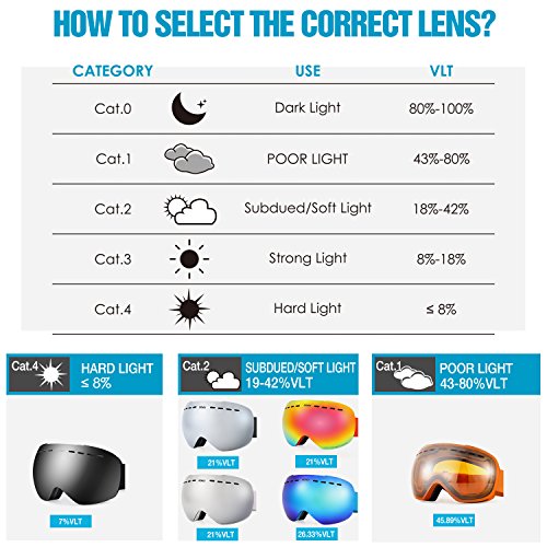 【Spherical Frameless Ventilated Dual Lenses】: Design of spherical frameless lenses provide you with an ultra clear wide view. The dual lenses with ventilation system and anti-fog treatment can enhance the air-flow and reduce fogging while keep your eyes in warm condition.