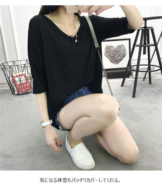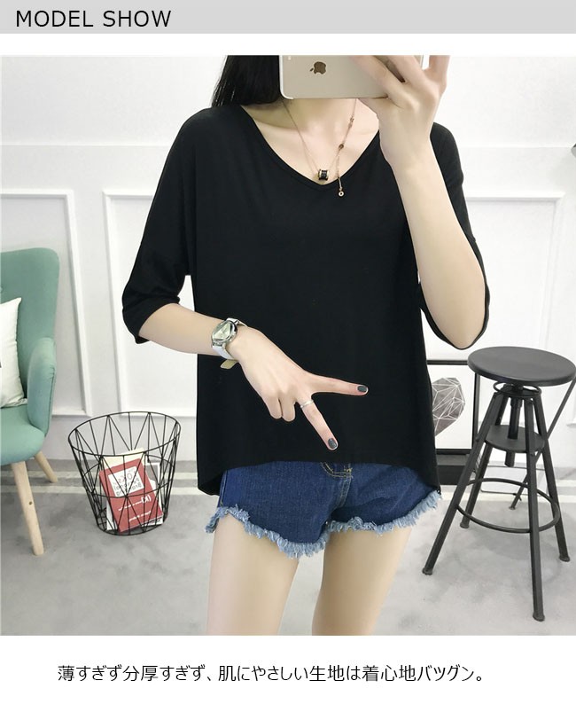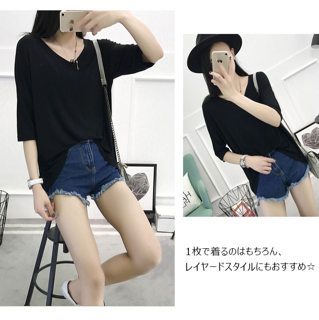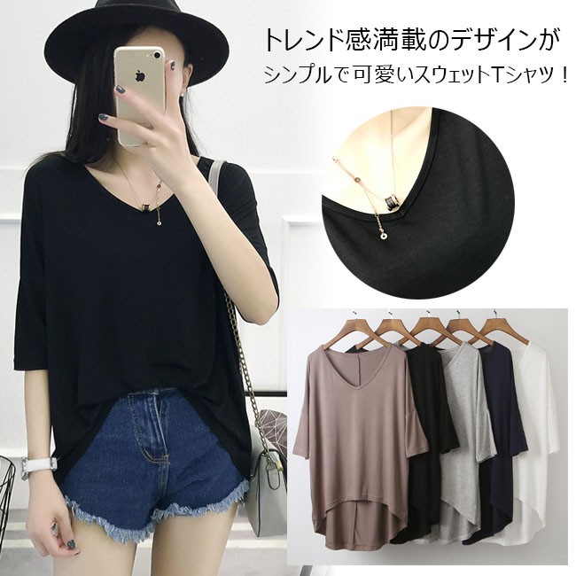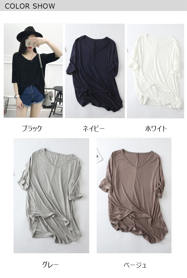 | 商品名 | スウェットシャツ インナーシャツ Tシャツ レディース トップス カジュアル 無地 五分袖 とろみ フリル袖 Vネック ゆったり 夏新作 |