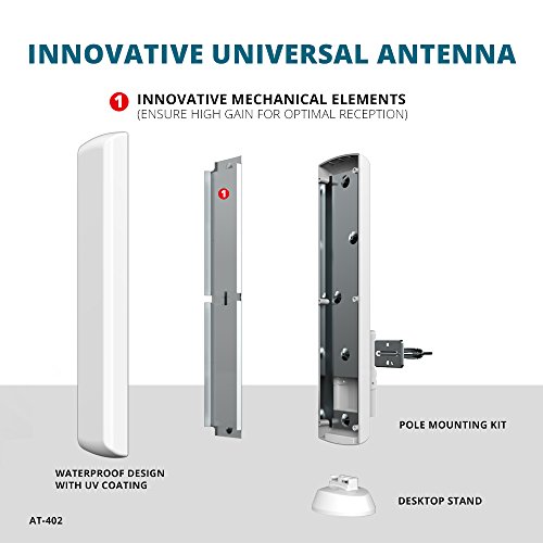 ◆ Its UV coating, weather resistant finish and creative design make the AT-402 perfect for easy home exterior installation: wall, roof, balcony. It is also suitable for indoor use in an attic or placed on a table top. It is recommended to install on a wall outside, on a pole on roof top or on balcony as an OUTDOOR TV ANTENNA for WEAK SIGNAL reception, while to place in an attic or on a table top as an INDOOR TV ANTENNA for MODERATE/STRONG SIGNAL reception.