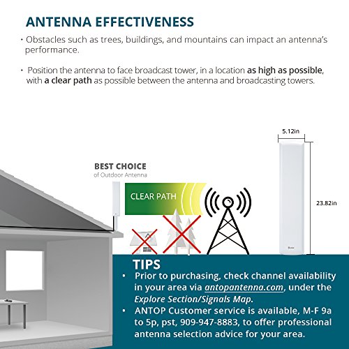 ◆ Engineered and designed in the USA by ANTOP, the antenna specialists, the Flat-panel AT-402 over-the-air digital TV antenna with NEW GENERATION DIGITAL TECHNOLOGY is designed to match similar gain of traditional bulky, unsightly mechanical antennas with a signal reach of up to 60 miles from the point of signal origination.