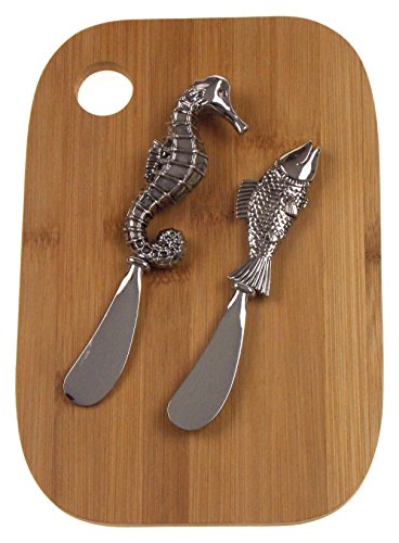 Fish & Sea Horse Cheese Spreaders Bundled with Bamboo Cheese Board