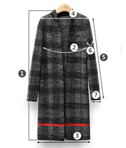 尺码 ①衣长 ②胸围 ③下摆围 ④肩宽 ⑤袖长 ⑥袖臂围 ⑦袖口围