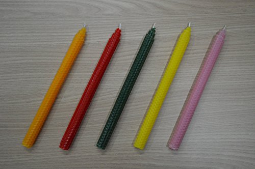 Beeswax is the only naturally existing wax on earth and is a completely renewable resource. The bright flame of a beeswax candle releases the scent of honey and the nectar of flowers in a honeycomb. When a beeswax candle burns, it emits the same beautiful light spectrum as the sun, along with negative ions that clean the air of dust and fine particles. Negative ions are drawn to positive ions. Positive ions hold on to airborne things like dust, mold and odors; the negative ions latch on to the "contaminated" positive ions and weigh them down. This causes the contaminated positive ions to fall to the ground, cleaning and purifying the air. A perfect example of this phenomenon is rainstorms. A rainstorm is a negative ionic event, which is why we say the air smells so fresh after a rainstorm. Our candles are dyed for a holiday atmosphere, and emit a subtle, gentle burn with a clean, stable flame once the wick reaches the wax. Our candles are clean and environmentally friendly. 0 |