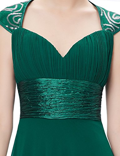 Gorgeous trailing evening dress perfect for all formal occasions, from prom to weddings. This dress features a ruched bust ending in a figure flattering empire waist. The shoulders and back of the dress are enhanced with a swirling sequin pattern making the dress sure to stun no matter where you wear itFeature