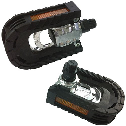 * Thread fitting size is 9/16. This is the most common fitting size with only a handful of Kids' bikes with the older 1/2 thread size * Smooth strong steel axle with steel bearings * Designed to give good grip in all weathers * Built in reflectors front and back so they don't fall off * 100mm length and 70mm width * Weight 425g per pair