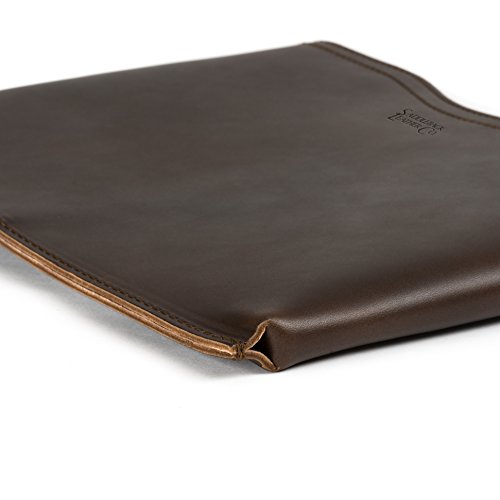 Full grain Saddleback Leather sleeve for Macbook Pro laptops. Sewn with thick leather edges that help absorb impacts. This case is perfectly snug: not too loose, not too tight, with a contoured top and bottom that allow easy removal of your laptop. Best of all, it's surprisingly lightweight. Built to last with no breakable parts and backed by Saddleback Leather's 100 year warranty. Because of natural oils shade may vary. Small: Exterior: 13.25" W x 9.75" H x 0.75" D; Interior: 12.75" W x 9.25" H. Medium: Exterior: 14.5" W x 10.75" H x 0.75" D; Interior: 14" W x 10.5" H.Feature