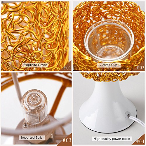 Sun-E Electric Oil Warmer Essential Oil Aromatherapy Aroma Diffuser Fragrance Lamp Light Aluminum Cover(Gold)