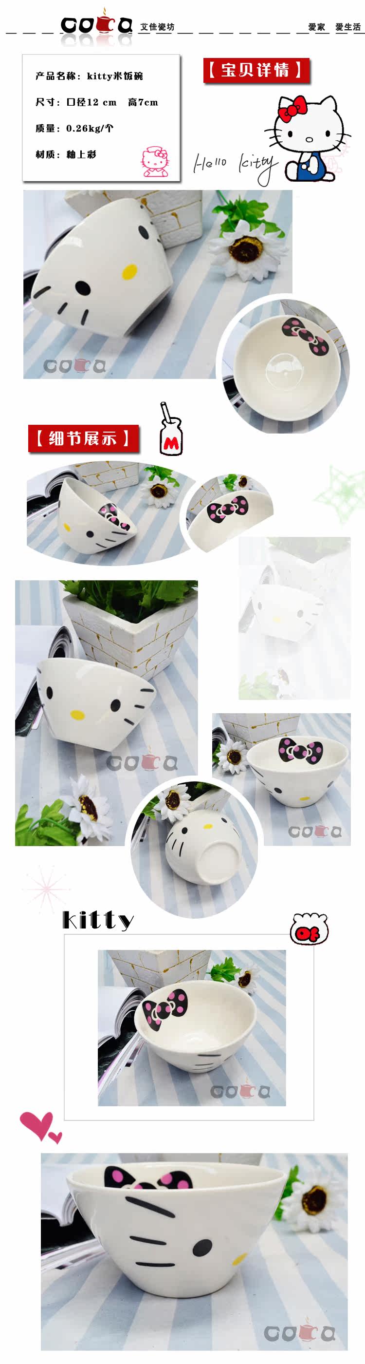 hello kity碗 骨瓷陶瓷餐具 动漫周边米饭碗 卡通汤碗可爱的碗
