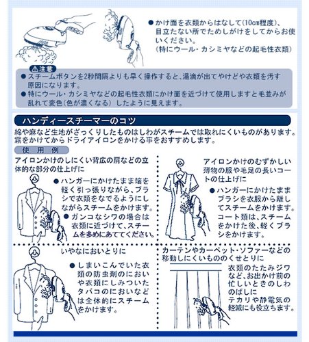 스팀《하》《와》에 의류 쾌적 생활♪스팀기능으로,의류를 한 카《―》에 건(걸친) 채로 주름과 냄새를 잡는 것 를 할 수 있습니다.의류에 부착한 먼지나《고》《미》를 잡는《다》《후》《루》의류《후》《라시》부착.한《데》《―아이론》로서도 쓸만합니다.온도 조절 기능 첨부 와.아이런이 걸어(걸쳐) 면은 불소 가공이 되고 있습니다.접어 접어 콘《하》《구토》에 수납 성과 편리합니다.