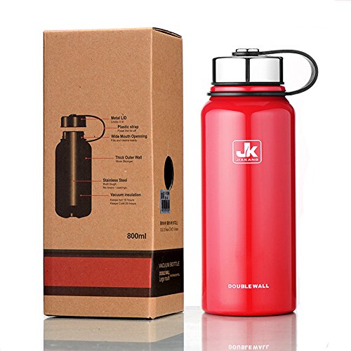 Kingo 27oz Stainless Steel Water Bottle Vacuum Double Wall Insulated Wide Mouth Travel Bottle (27oz, Red)
