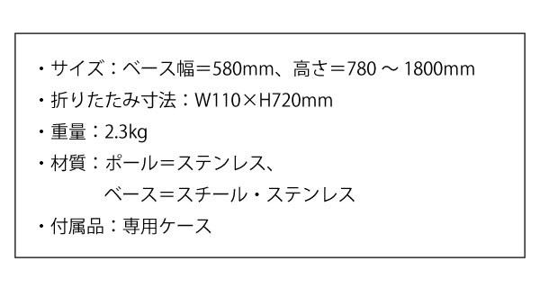 ●サイズ:ベース幅=580mm、高さ=780~1800mm