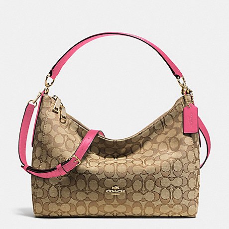 -. Title : EAST/WEST CELESTE CONVERTIBLE HOBO IN OUTLINE SIGNATURE (F58284) IMITATION GOLD/KHAKI STRAWBERRY