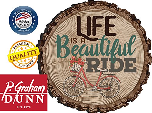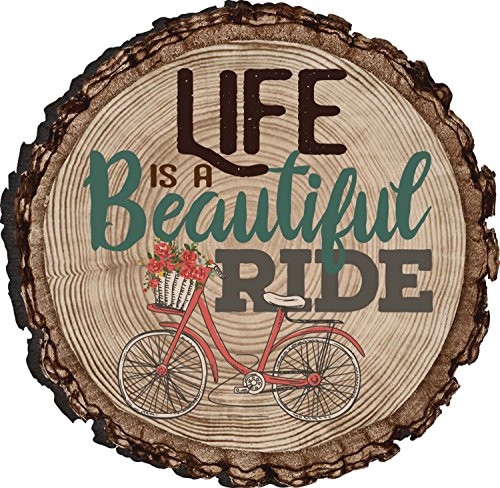 Life Is A Beautiful Ride Bicycle Floral Basket Rustic Bark Look Wood Circle Magnet