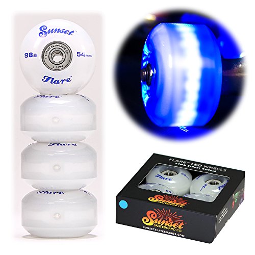-. Title : 2016 Sunset Skateboards Blue 54mm 98a Street LED Light-Up Wheels Set with ABEC-9 Bearings (4-Pack)