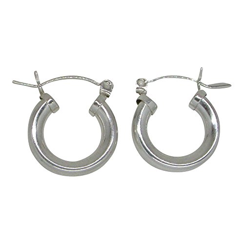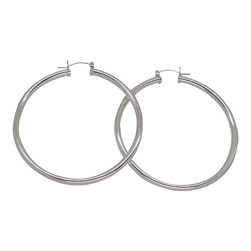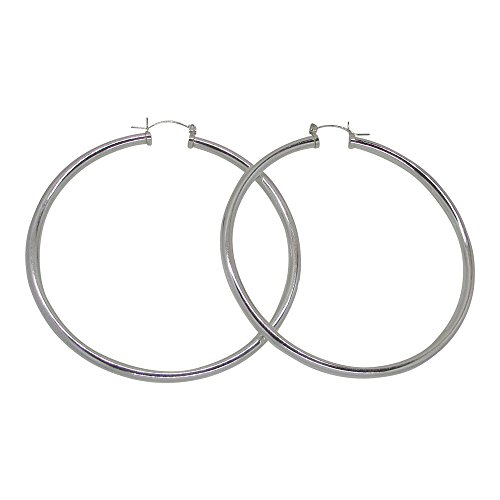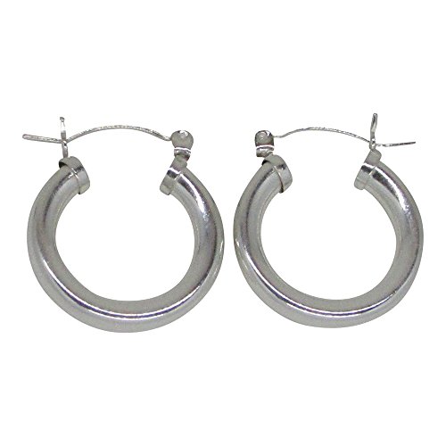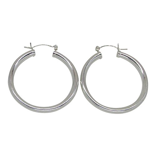 Jewelry lovers need a pair of classic sterling silver hoop earrings. These hoops pack a powerful punch with a nickel-free, 4mm thick tube, they're perfect for everyday wear while also making a statement. They are simple, elegant, and timeless. A click down clasp means they are a snap to put on and you can immediately get going.This item is made from Sterling Silver. All of our Sterling Silver products are nickel-free (a consideration for people with metal allergies).