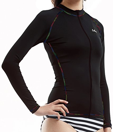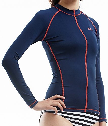 New Beach Surf Rash Guard Women Long Sleeve Full Zip-up Top Swimwear